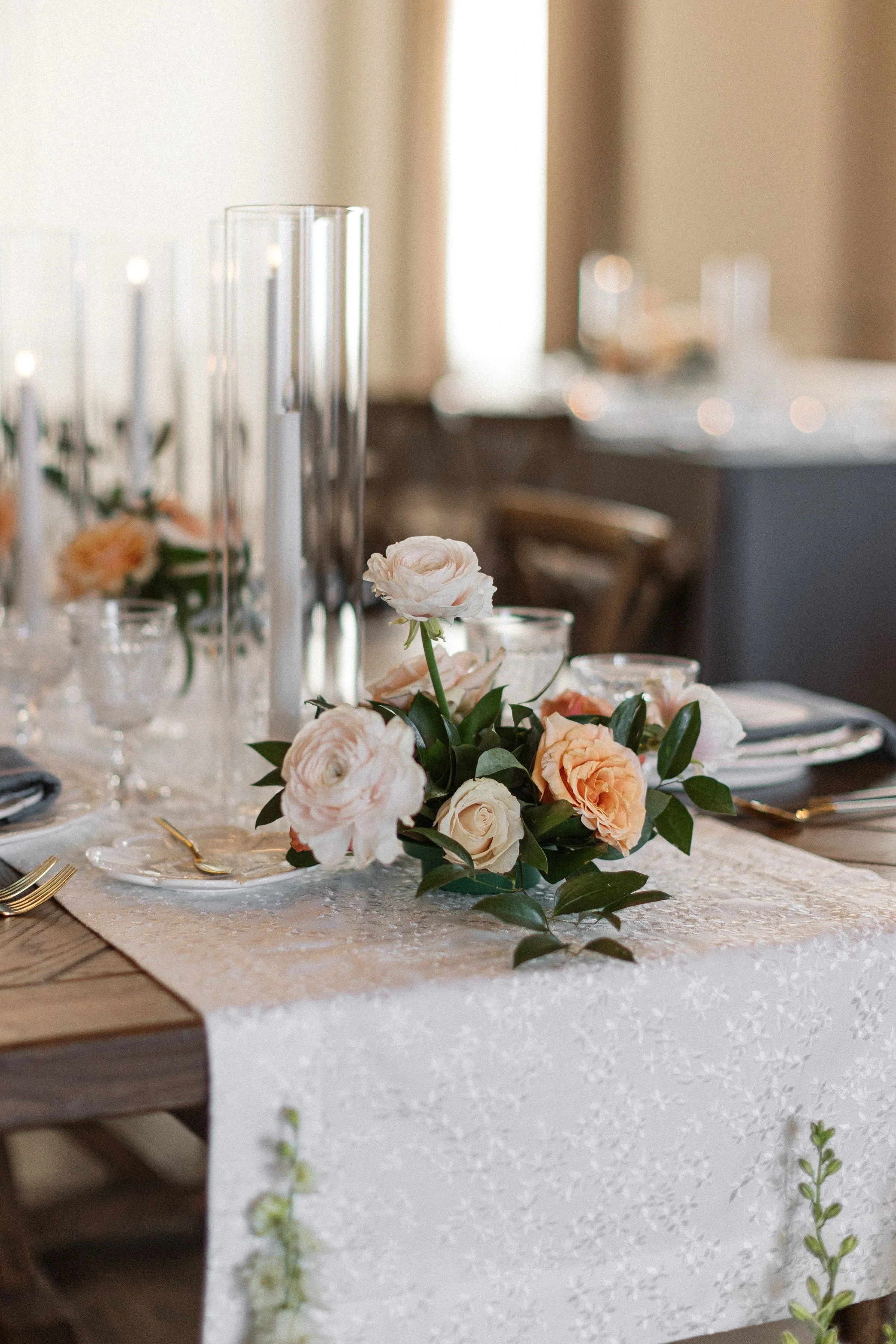 The HYDE’s architectural details, 40 ft ceiling and natural light lends itself to creating a unique ceremony setting. Our couples have two options for their ceremony backdrop, the 11ft fireplace or arched windows.